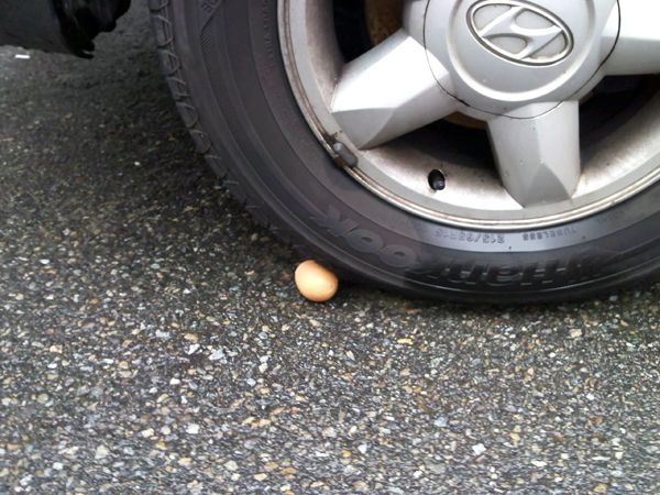 비탈에 주차할 때 타이어에 돌을 괴어놓는 경우가 있다.