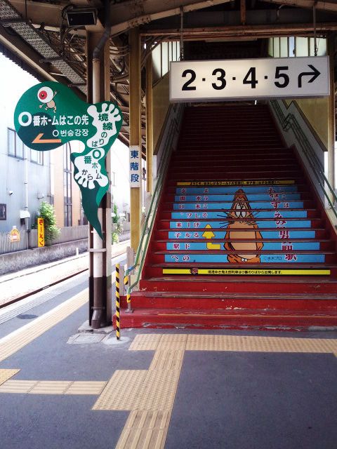 요나고 공항까지는 각 역마다 저 만화의 요괴 캐릭터 이름이 붙어 있습니다.