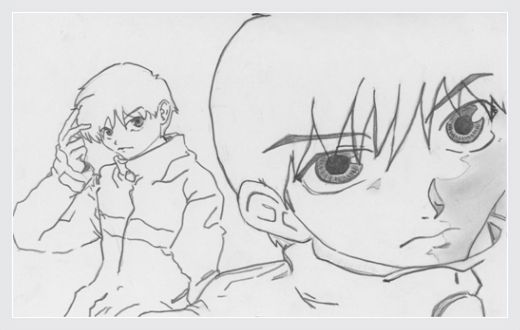 인물은 두 개의 만화를 보고 중첩해서 베낀 것이다.