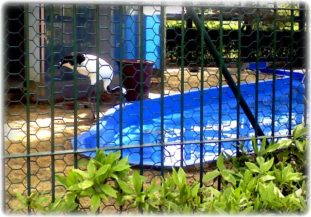 수영장 같은 연못에 생선들이 옹기종기 모여 산다.
