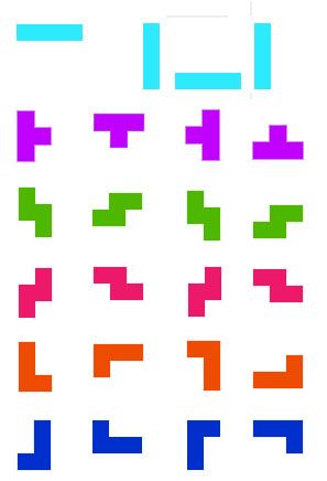 예를 들어, [┏┛] 모양의 공간이 있으면 분홍색 블럭이 필요하고
