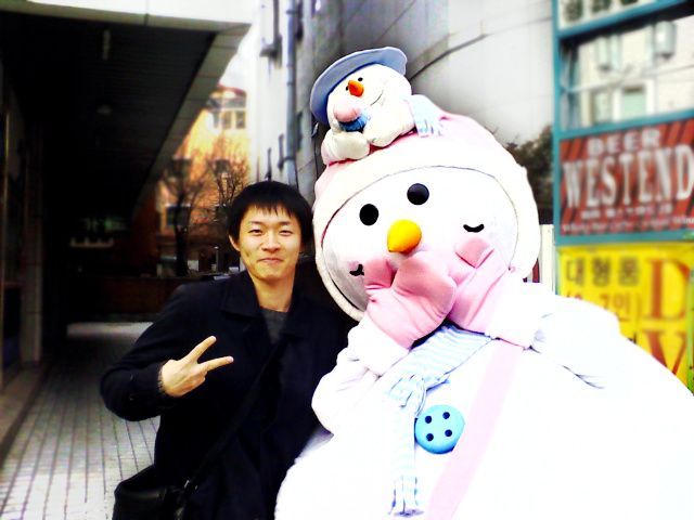 신촌을 거닐다가 배스킨라빈스 눈사람을 만났다.