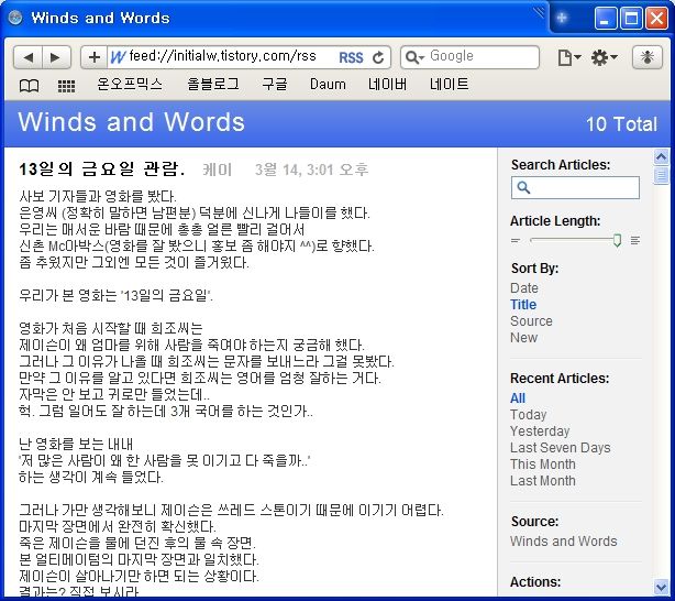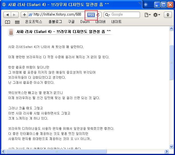 빨간색 박스를 그려놓은 부분이 RSS 읽기 버튼이다.