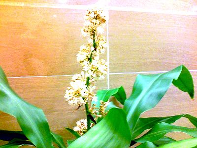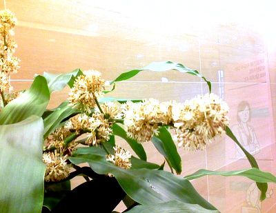 엘리베이터 앞에 놓여져 있는 행운목에 꽃이 피었다.