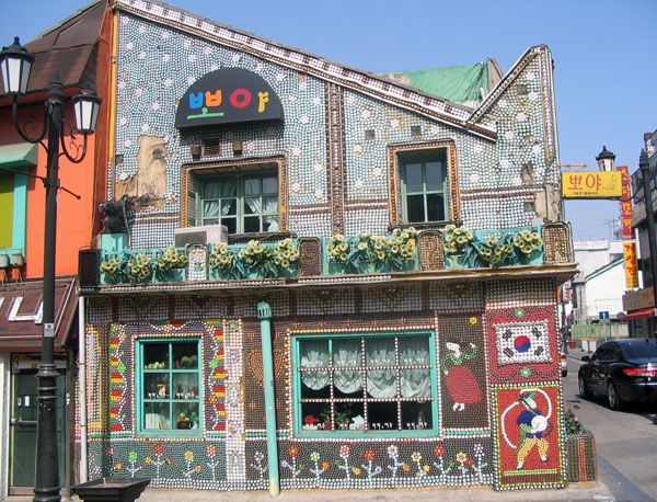 이 동네는 찍을 건물이 많다. 병뚜껑으로 꾸민 집.