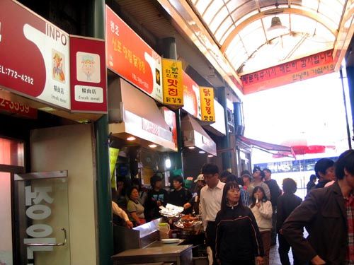 우린 시간도 없고 해서 시장 입구의 가게에 줄을 섰다.