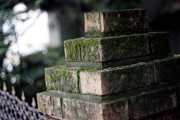 벽돌에 이끼가 자란다. 자연친화적이란 뜻일까.