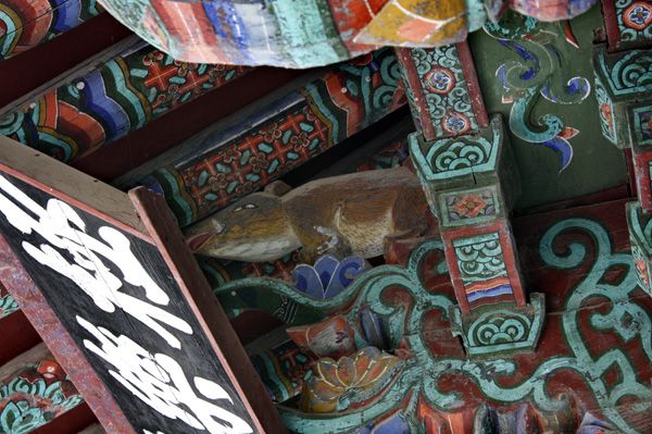 하지만 진짜는 현판 뒤에 숨어있다. 알다시피 이것이 진짜 극락전 돼지상이다.