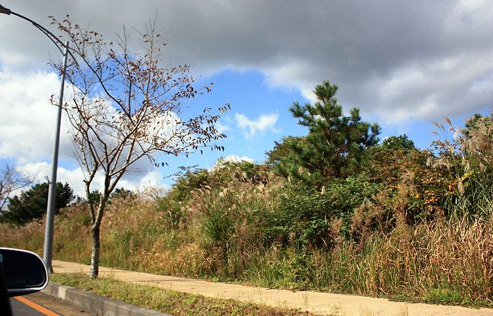 붕붕 간다. 근데 날씨가 희한하다. 저긴 쨍하고 머리 위만 흐리다.