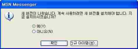 MSN 팝업 - 새 버전 설치를 종용 또는 강요한다.